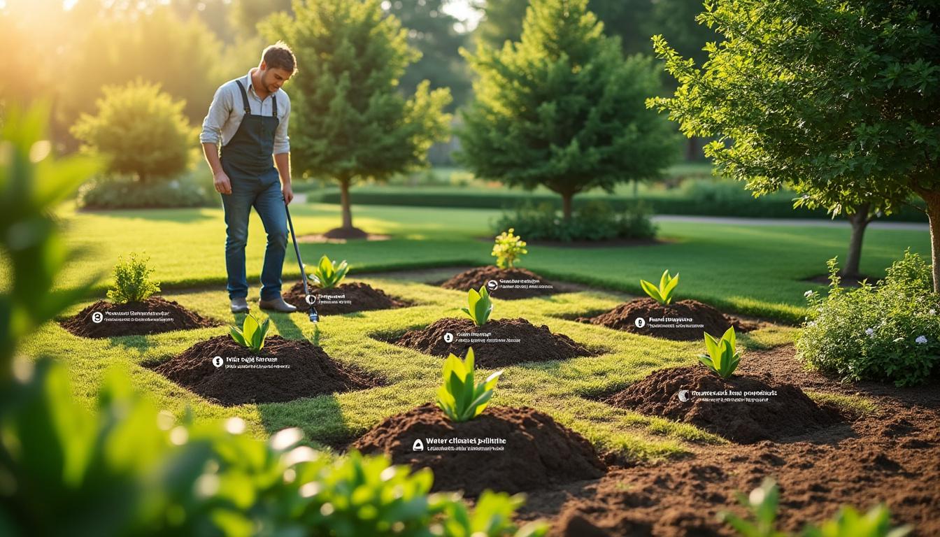 - Préparation du sol : décompactage, apport d’amendements, mise en place d’une fosse drainante.