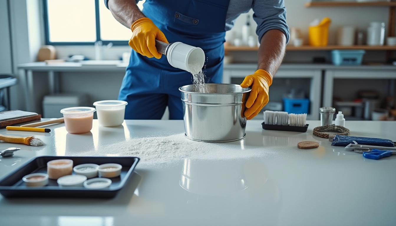 Anecdote technique : un particulier a tenté de créer un sol blanc nacré en incorporant des pigments nacrés sans contrôle de ratio ; la couche s’est avérée trop fragile. Après ponçage et application d’une couche de protection renforcée, le sol a retrouvé résistance et brillance attendues. Cette expérience montre la valeur d’un test préalable sur échantillon.