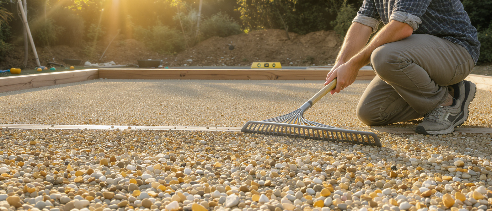 | installation pratique : outils simples, géotextile, couches drainantes et compactage progressif pour une mise en œuvre accessible au bricoleur. |