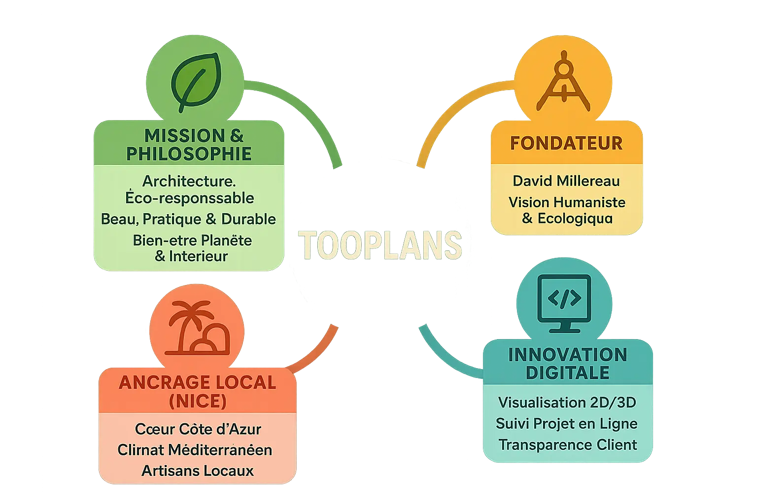 Tooplans, une révolution en architecture : écolo, digital, made in Nice. Matériaux biosourcés, économies d’énergie, espaces vivants. Fondé par David, l’agence allie innovation et nature. Mission assumée : stylé et vert. Budget serré ou urgence ? Oubliez. Pour les autres, couteau suisse déco et suivi de chantier en ligne.